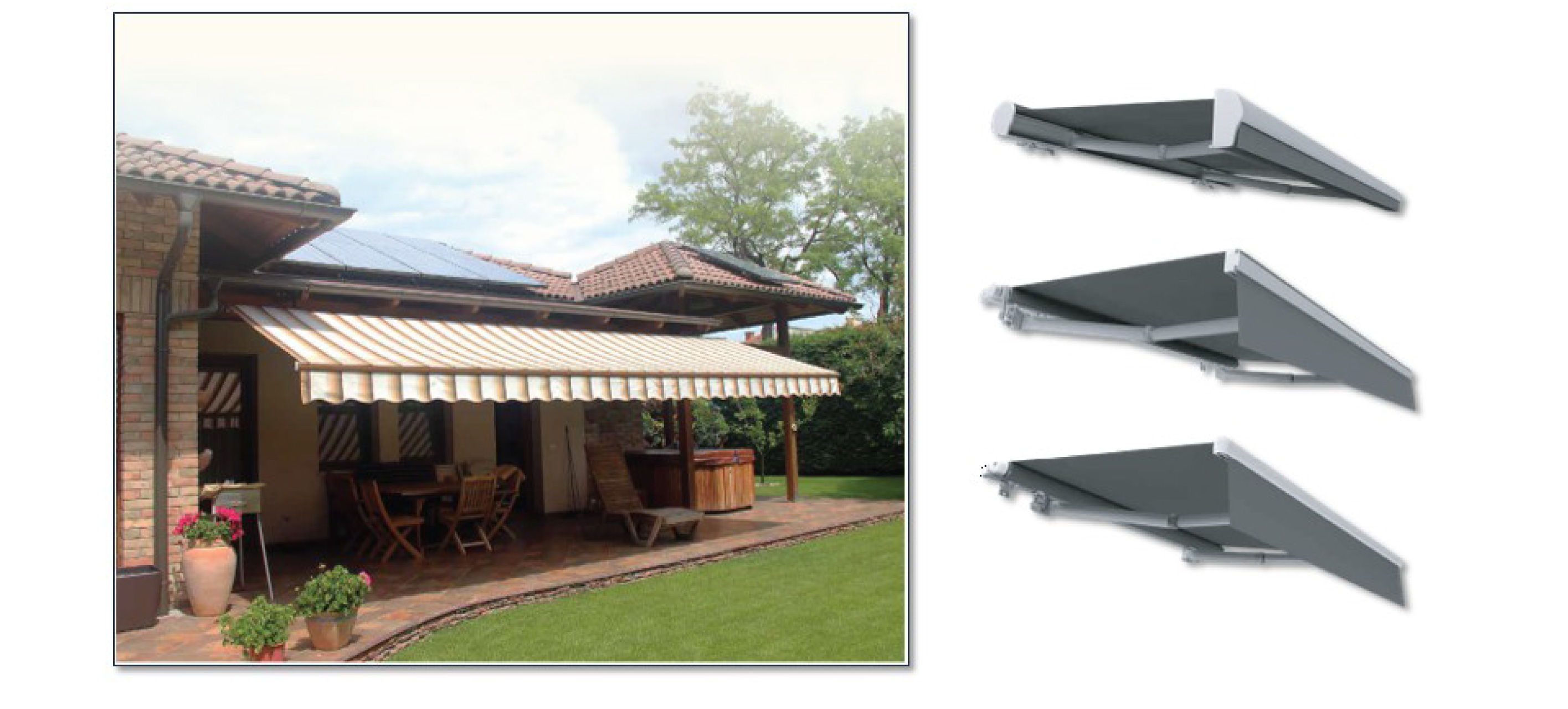 Ezek a napellenzők a klasszikus árnyékolás modern megközelítését képviselik: formatervezett, tartós szerkezeti elemeik, valamint a választható ponyvák széles szín- és mintaválasztéka révén bármilyen stílusú épülethez harmonikusan illeszthetők.