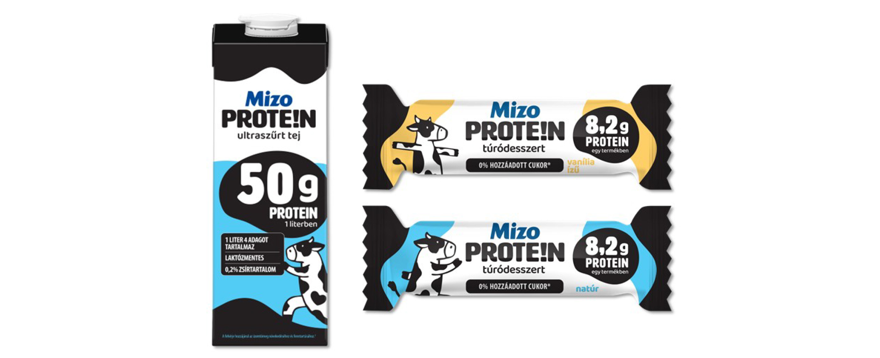 A Mizo PROTE!N ultraszűrt tej (1 l) és a Mizo PROTE!N túródesszertek (natúr és vaníliás, 51 g) a fehérjebevitel egyszerű és élvezetes formáját kínálják a tudatos fogyasztók számára.